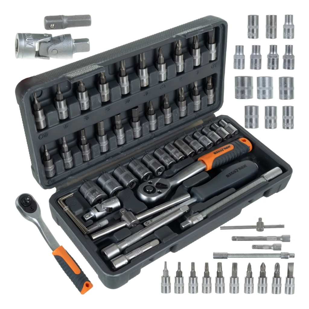 46 részes dugókulcs és bit készlet 1/4" racsnival, króm-vanádium acélból.
