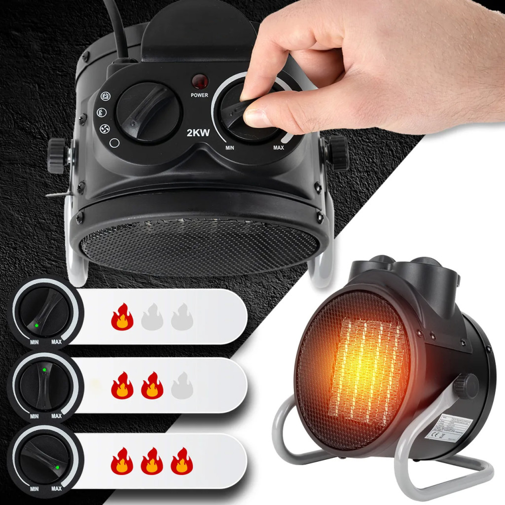 A 2kW teljesítményű elektromos hőlégfúvó ideális választás lakóhelyiségek, műhelyek, üzletek, irodák vagy kisebb raktárak fűtésére. Egyszerűen kezelhető, hordozható és ellenálló kialakítású, így hosszú távú használatra is kiváló.
